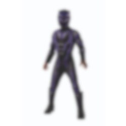 Black Panther Battlesuit Deluxe naamiaisasu sisältää osittain pehmustetulla haalarilla ja lihaksilla. Asu on avoin jaloista, jotta kengät saa jalkaan. Asu suljetaan selästä. Mukaan kuuluu muovinen kasvot peittävä naamari ja kengän päälliset. Asu on 100% polyesteria. Käsinpestävä hieman vettä ja kuivataan ripustaen. Asua on kahdessa koossa, joka sopii 5-10-vuotiaille lapsille. Tämä on virallinen lisensioitu tuote.