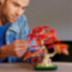 Anna luonnon seesteisen tunnelman viedä mukanaan aikuisille suunnatun LEGO® Botanicals Punalehtinen japaninvaahtera-bonsaipuu setin parissa. Rentoudu ja rauhoitu rakentamalla oikealle esikuvalleen uskollinen kasvi punaisine ja oransseine lehtineenja tummanvihreine ruukkuineen. Valmis rakennelma on kestävä koriste ja ilahduttava syntymäpäivä‑ tai tupaantuliaislahja innokkaalle viherpeukalolle.