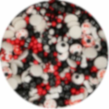 Anna leivonnaisille karmiva Halloween-tunnelma tällä FunCakesin strösselillä. Sekoitus sisältää verenpunaisia helmiä, luita, lepakoita ja pelottavia 3D-silmiä, jotka tekevät kuppikakuista, kakuista ja tortuista hauskoja ja pelottavia. Täydellinen Halloween-juhliin!