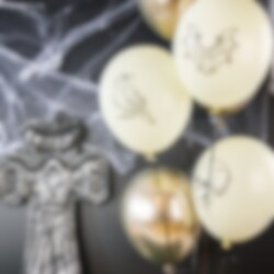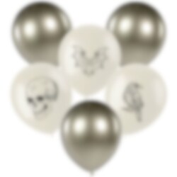 Tyylikäs Halloween-koristelu näillä kauniilla lateksipalloilla. Setti sisältää kuusi ilmapalloa, joissa on erilaisia painettuja kuvioita – täydellisiä oikean tunnelman luomiseen. Ilmapallot voidaan täyttää heliumilla tai ilmalla ja ne sopivat sekä sisä- että ulkokäyttöön.