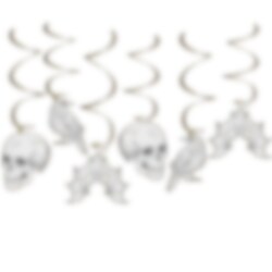 Luo oikea tunnelma halloweenjuhliin näillä karmivilla koristeilla Creepy Curiosities -sarjasta! Setti sisältää kuusi roikkuvaa kultaista spiraalia, joissa on yksityiskohtaisia pahvikuvioita lepakoista, pääkalloista ja muista karmivista hahmoista.