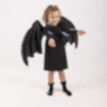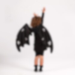 Hieno folioilmapallo, joka esittää mustia lepakon siipiä hopeisilla tähdillä. Täydellinen yksinkertainen ja hauska asuste Halloween-juhlintaan.