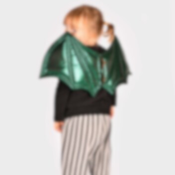 Vihreät lohikäärmeen siivet – hieno lisä Halloween-naamiaisasuusi. Valmistettu 100 % polyesterista. Siipien yläreunassa metallirunko, joka lisää vakautta. Siivissä on joustavat olkahihnat ja tyylikäs vihreä metallinen viimeistely. Sopii noin 2-14-vuotiaille lapsille.