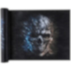 Musta kaitaliina, jossa koristeellinen Haunted Halloween -kuvio hienoilla pääkalloilla. Täydellinen koriste juhlapöytäänt Halloween-juhliin.