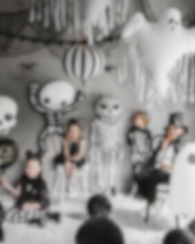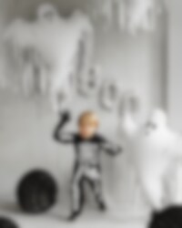Tämä suuri folioilmapallo, joka on valkoisen kummituksen muotoinen mustilla silmillä ja suulla, luo klassisen aavemaisen tunnelman. Se on täydellinen katseenvangitsija sisäänkäynnillä, katossa tai osana suurempaa halloweenkoristetta.