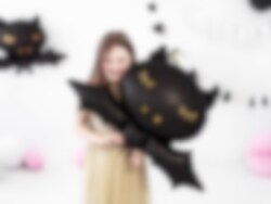 Suloinen foliopallo, joka esittää mustaa lepakkoa. Kaunis lisä Halloween-juhlien koristeeksi. Lepakko on kooltaan noin 80 x 52 cm ja täytetään helpoiten heliumilla.
