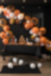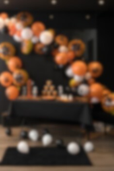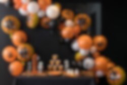 Tämä tyylikäs ilmapallokaari kootaan itse Halloween-juhliin. Hienot värit ja upea design tekevät siitä katseita keräävän koristeen seinälle tai sisäänkäynnin yläpuolelle. Ilmapallokaaren kokoaminen vie hieman aikaa, mutta lopputulos on sen arvoinen.