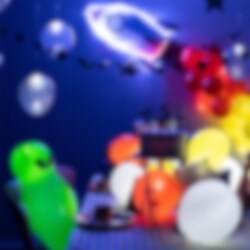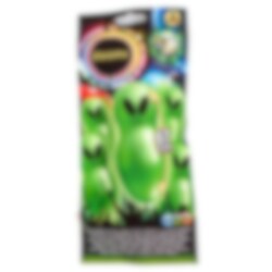 5 kpl. neonvihreitä LED-ilmapalloja alienien kasvoilla. Nämä pallot kohottavat juhlatunnelmaa, erityisesti Halloweenina! Jokaisessa ilmapallossa on pieni LED-lamppu, joka voidaan helposti aktivoida ennen ilmapallon täyttämistä. Ne loistavat jopa 15 tuntia. Täytettynä ilmapallot ovat noin 61 cm korkeita.
