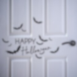 Muuta sisäänkäyntisi aavemaiseksi portaaliksi näiden Happy Halloween -ovitarrojen avulla. Setti sisältää arkin, jossa on 12 lepakkoa ja "Happy Halloween"-tarra. Täydellinen lisäämään Halloween-silauksen kotiisi.