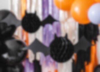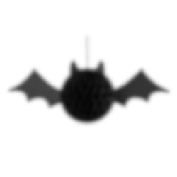 Tämä koristeellinen pyöreä lepakko on valmistettu mustasta hunajakennopaperista. Leveät siivet on tehty paksusta paperista. Täydellinen koriste ripustettavaksi kattoon, sisäänkäynnin luo tai ruokapöydän ylle.
