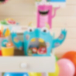 Kaunis pahvinen aukollinen pöytäkoriste, joka esittää suloista hirviötä, jonka voit täyttää karkilla tai pienillä kekseillä. Sopiva koriste Halloween-teeman juhliin. Koriste on 23 x 37 x 13 cm kokoinen.