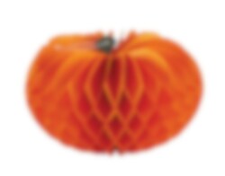 Tämä koristeellinen hunajakennokurpitsa on 30 cm korkea ja valmistettu paperista. Kirkkaan oranssin värin ansiosta se on juhlava elementti Halloweeniin.
