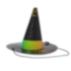 6 noitahattua, jotka voit pukea päähäsi halloween-juhlien koittaessa. Aseta hatut lautasille kauniiksi koristeiksi. Hatut ovat 10 cm korkeita ja ne on valmistettu paperista. Hatut pysyvät paikallaan pienellä kuminauhalla.