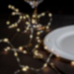 Koristele katettu pöytä valoilla. Näissä valoissa on 60 kpl LED- lamppuja, jotka antavat lämpimän valaistuksen. Täydellinen pöytäkoristeen ympärille. Toimii kolmella AA-paristolla (ei mukana).