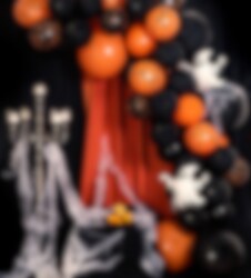 Supersiisti musta-oranssi Ilmapallokaari, joka kootaan itse. Upea koriste Halloween-juhliin. Osta hämähäkinseittimme mukaan luodaksesi ekstrapelottavan vaikutelman.