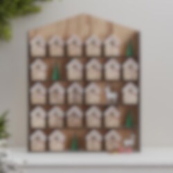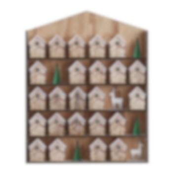 Aloita lähtölaskenta jouluun tällä uskomattoman kauniilla ja ylellisellä puisella adventtikalenterilla, jossa on söpöjä pieniä taloja, jotka voi täyttää yllätyksillä.