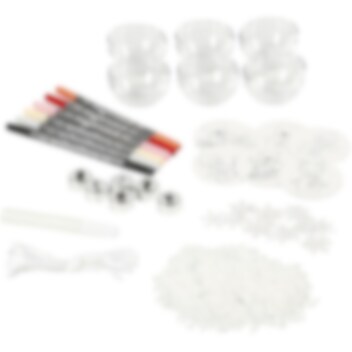 DIY-askartelusetti, jonka avulla askartelet 6kpl uniikkeja joulupalloja. Väritä kartonkipohja ja kiinnitä muu sisältö, aseta ne sitten pallon sisään ja luo suloisia persoonallisia koristeita ripustettavaksi joulukuuseen. Pakkaus sisältää 6 kpl. kaksiosaisia akryylipalloja, 20 grammaa tekolunta, 6 kpl colortime tuplapäistä tussia, 1 kpl valkoista glitterliimaa, paljetteja ja 3 metriä valkoista satiininauhaa ohjeiden kanssa.