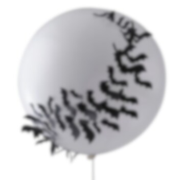 Superhieno suuri valkoinen ilmapallo, jossa on mukana erikokoisia koristeellisia lepakoita, jotka on valmistettu pahvista ja jotka muodostavat siistin 3D-efektin.