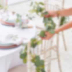 Ihana koristeköynnös eukalyptuksen lehdillä, jonka voit ripustaa huoneeseen synttärijuhlien tai muihin juhlien ajaksi. Koriste on valmistettu muovista ja on noin 1,9 m pitkä.