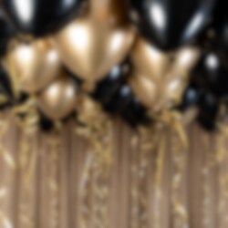 Upea mustakultainen ilmapallosetti, jolla voit koristella kattosi synttäreille, juhliin tai vaikka häihin.
