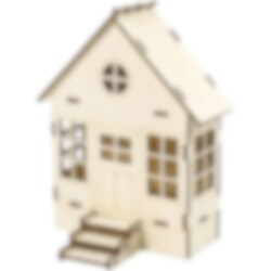 DIY-askartelusetti söpön pienen puutalon kokoamiseen. Talo on täydellinen joulupukkia varten, kun hän tulee käymään. Talo on tehty vanerista ja sen koko on 19 x 24 cm.
