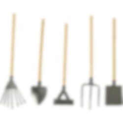 5 puutarhatyökalua, jotka voit lahjoittaa tontulle, jotta hän voi tehdä puutarhasta kauniin joulua varten. Työkalut ovat kooltaan noin 11 cm.