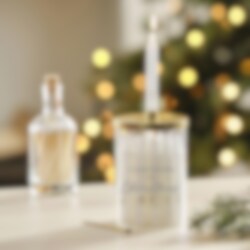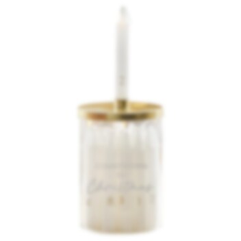 Tyylikäs lasipurkki, jossa on kullanvärinen kansi ja joka toimii myös kynttilänpidikkeenä mukana tuleville 24 valkoiselle kruunukynttilälle, joissa on kultaiset numerot. Luo kodikas lähtölaskenta joka päivä jouluun asti tämän koristeen avulla.