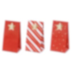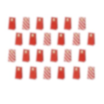 Todella hieno adventtikalenteri punaisilla paperipusseilla ja mukana tulevilla kultatarroilla, jotka on muotoiltu tähdiksi numeroilla 1-24. Yllätä läheisesi itse tehdyllä kalenterilla ja pienillä kalenterilahjoilla joka päivä ennen joulua.