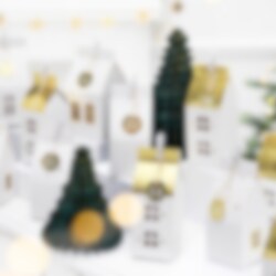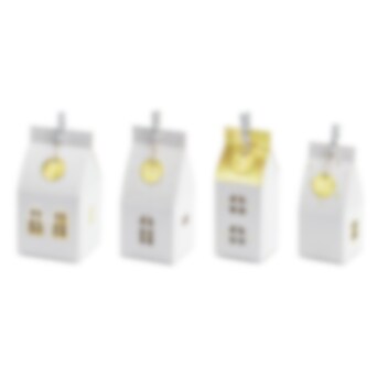 Tee oma tyylikäs adventtikalenteri näistä suloisista pienistä taloista, jotka ovat valkoisia hienoilla kultaisilla yksityiskohdilla. Taloja on neljää eri mallia ja kokoa: 4 kpl. on 7 x 15,5 cm 4 kpl. on 8 x 15 cm 8 kpl. on 6 x 15 cm 8 kpl. on 6 x 13,5 cm
