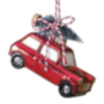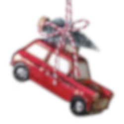 Joulukuusenkoriste - Punainen auto ja joulukuusi 9 x 6 cm