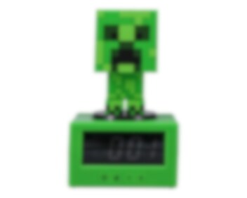 Hälytyskello toimii 3 AA-paristolla (ei sisälly hintaan). Kun painat Creeperin päätä alas, yövalo syttyy. Aktivoidaksesi torkkutoiminnon, kosketa Creeperiä kevyesti. Lisäksi hälytysääni on saanut inspiraationsa Creeperin omasta äänestä, mikä lisää aitoa Minecraft-tunnelmaa.