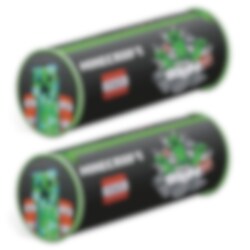 Musta penaali on koristeltu ikonisen Creeper-hahmon, TNT-palikoiden ja “BOOM!”-tekstin avulla klassisessa Minecraft-tyylissä. Pyöreä muoto tekee siitä tilavan, mutta helpon kuljettaa repussa. Suosikki sekä kouluun että vapaa-aikaan.
