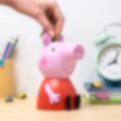 Hauska säästöpossu suositun Pipsa Possun muodossa – tekee säästämisestä hieman hauskempaa! Joka kerta, kun laitat kolikon sisään, yksi viidestä virallisesta Pipsa Possu -äänestä toistuu, mikä tekee säästämisestä erityisen hauskaa.