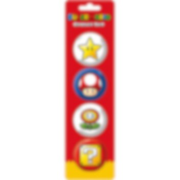 Tee kirjoitushetkestä hauskempi näillä värikkäillä Super Mario -pyyhekumeilla. Setti sisältää neljä erilaista kuvaa pelistä: tähti, sieni, tulipallo ja kysymysmerkkilohko. Täydellisiä juhlapusseihin, pieniksi lahjoiksi tai keräilyyn kaikille Super Mario -faneille.