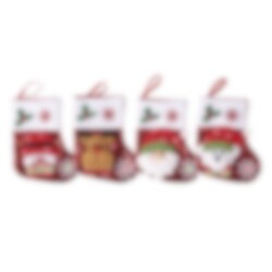 Kauniit punavalkoiset joulusukat, joissa on joulupukin, poron, lumiukon tai jääkarhun kuva. Ne voi ripustaa takan reunaan tai seinälle ja täyttää ne pienellä yllätyksillä lapsille, kun jouluaatto koittaa. Sukat ovat 15 cm korkeita ja ne on valmistettu 100 % polyesteristä. Myydään lajittelemattomina ja yksitellen.