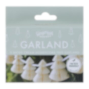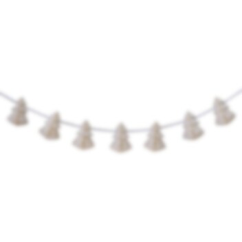 Tämä ylellinen uudelleenkäytettävä koristeköynnös, jossa on söpöjä kermanvalkoisia hunajakennomaisia kuusia valkoisella silkkinauhalla, on trendikäs ja tyylikäs koriste joulun aikaan. Köynnöksen pituus on 2 metriä, ja kuusia on yhteensä 10 kappaletta.