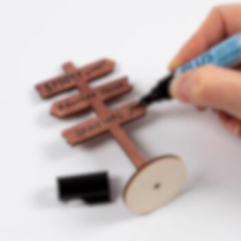 Minne olet menossa? Tämä pieni puinen kyltti voi ohjata sekä Pohjoisnavalle että Meksikoon. Kokoa se liimalla, niin se on valmis käytettäväksi - mutta voit myös koristella sen haluamallasi tavalla. Voit aina maalata kyltin Plus Color -askartelumaaleilla, jolla on hyvä peittävyys. Muista, että jos haluat koristella kyltin ohuella läpinäkymättömällä tussilla, sinun on ensin maalattava se, jotta väri ei leviä puuhun.