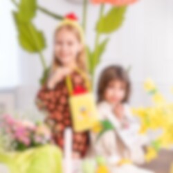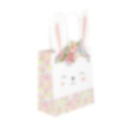 Tämä ihana kaninmuotoinen 14 cm kokoinen lahjakassi on täydellinen yksityiskohta pääsiäisjuhlaan! Täytä se karkilla, pienillä yllätyksillä tai iloisella tervehdyksellä ja ilahduta jotakuta. Söpöt pupunkorvat ja kukkakuosi tekee siitä todellisen kohokohdan pääsiäispöytään tai osaksi pääsiäismunajahtia.
