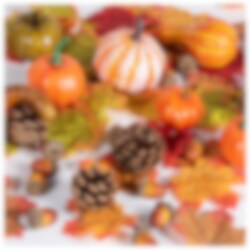Ihastuttava koristepakkaus, jossa on kurpitsoja ja erilaisia lisätarvikkeita. Hauska lisä Halloween-juhliin.