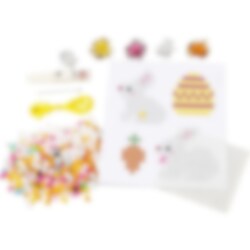 Askartelusetti, joka sisältää tarvikkeet hauskojen ja luovien pääsiäiskoristeiden luomiseen. Pakkaus sisältää: