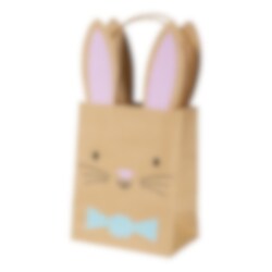 Lahjakassi, jossa on söpö pupukuvio. Täydellinen pienelle lasten pääsiäislahjalle. Pussi on valmistettu paperista ja se on 15 cm korkea ja 12 cm leveä.