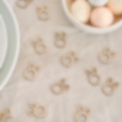 24 kpl. puusta tehtyjä pääsiäispupuja pääsiäispöydän koristeluun. Ihana yksityiskohta, jota vieraasi arvostavat. Konfetti on ympäristöystävällistä ja uudelleenkäytettävää. Jokainen pääsiäispupu on 2 x 3 cm kokoinen.