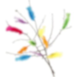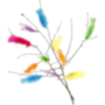 Värikkäät pääsiäissulat pienissä 3 kpl nipuissa, jotka on kiinnitetty yhteen rautalangalla. Höyhenet ovat noin 11-17 cm korkeita ja ne on valmistettu untuvasta.