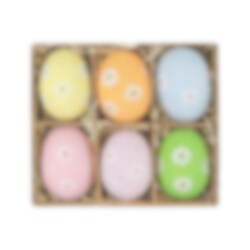 Luo tyylikäs ja ajaton pääsiäiskoristus näillä kauniilla roikkuvilla munilla. Valmistettu aidosta munankuoresta ja koristeltu pastellisävyisillä kukilla – kaunis yksityiskohta pääsiäisoksiin tai osaksi tyylikästä pöytäkattausta.