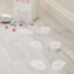 10 kpl tarroja, jotka esittävät söpöjä pupun jalanjälkiä. Niidä voi käyttää lasten munajahdissa pääsiäisaamuna. Tarrat ovat 12 cm korkeita ja 8 cm leveitä.