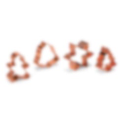 Patissen jouluaiheiset piparimuotit sisältävät 4 kpl erilaisia kuparisia muotteja. Piparimuotit on valmistettu ruostumattomasta teräksestä ja soveltuvat käytettäväksi marsipaaniin, keksitaikinaan tai muihin vastaaviin. Setti sisältää piparkakku-ukkoa, joulukelloa, lumihiutaletta ja joulukuusta esittävät piparimuotit. Muottien koko vaihteleee 6-8 cm välillä.