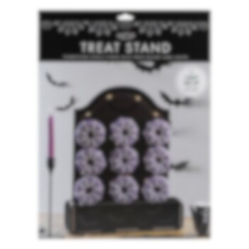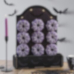 Hieno teline donitseille sisältäen LED-valonauhan, joka antaa aavemaista ilmettä.