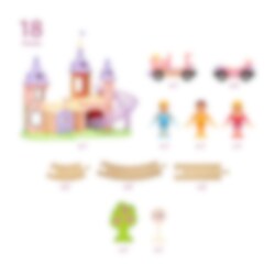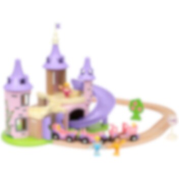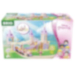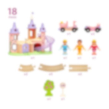 BRIO - Disney Prinsessat linna junaratasetissä on upea prinsessalinna, puinen junarata, prinsessajuna vaunuineen, kolme Disney-prinsessahahmoa ja lisätarvikkeita.