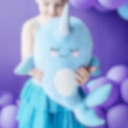 Tyyny/pehmolelu, joka muistuttaa suloista sinistä sarvivalasta. Täydellinen lahja kastajaisiin. Sarvivalas on valmistettu 100% polyesteristä ja on kooltaan noin 36 x 51 cm.