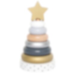 Jabadabadon pinoamislelu hienoissa väreissä ja päässä tähti. Tämä klassinen lelu toimii täydellisesti kastelahjana, sillä se on hauska leikkikalu, joka kehittää lapsen hienomotoriikkaa. Puisiin renkaisiin on helppo tarttua. Pinoamislelun korkeus on 18 cm.